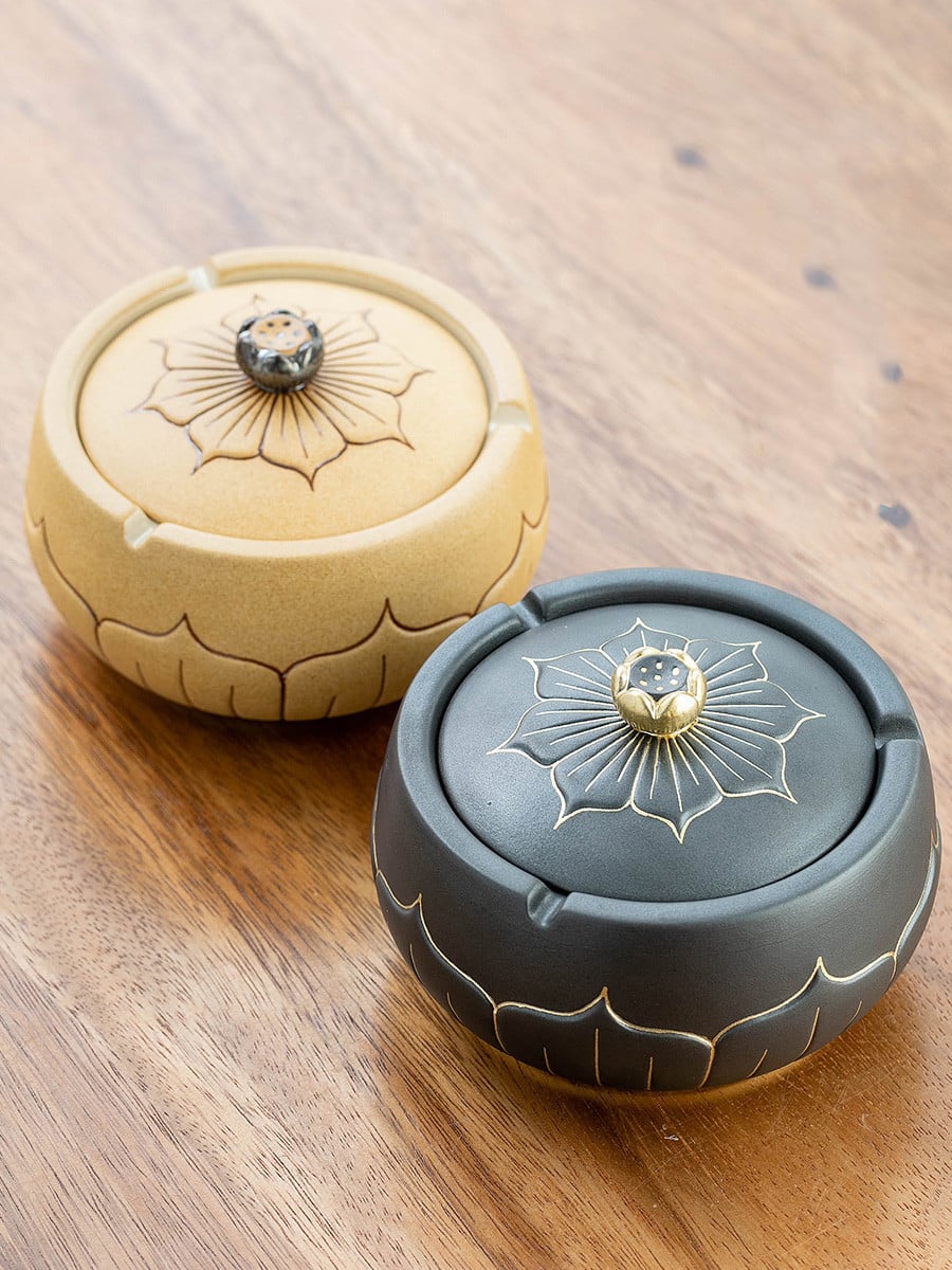 - Design: Lotus motif embossed, with a windproof lid
