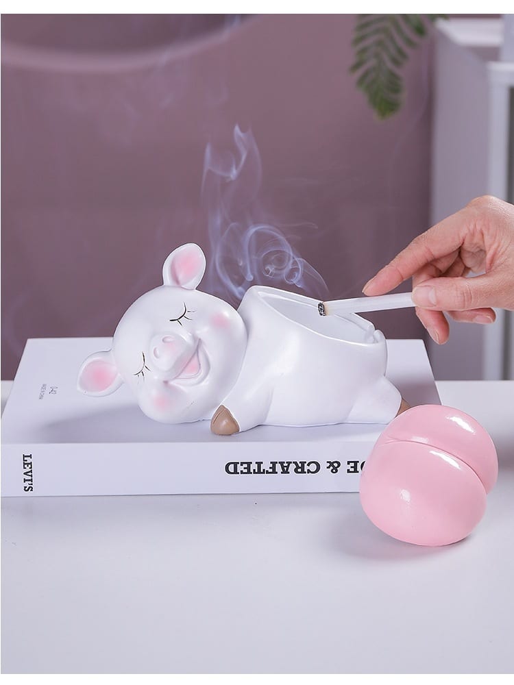 - Design: Humorous pig-themed ashtray with a bum lid