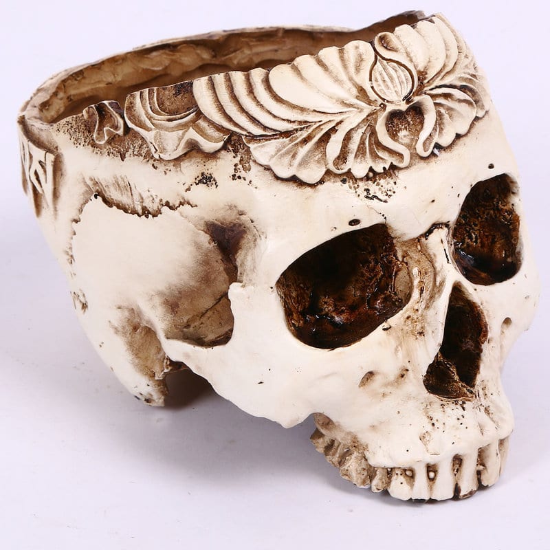 - Design : Crâne avec une couronne de fleurs, idéal pour les espaces d'Halloween ou aux thèmes gothiques